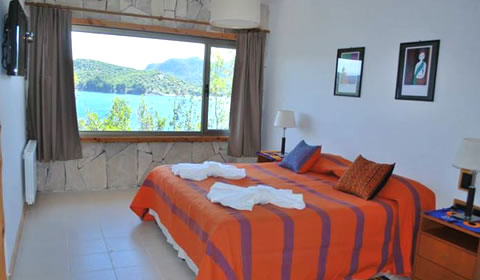 Habitaciones Estándares, decoradas artesanalmente con acolchados mexicanos hechos en telar, con TV LED de 32" o 24", con decodificador satelital. Baño vidriado con vista al lago, ducha, mesadas y espejos de ciprés con bachas rústicas, inodoro y bidet.