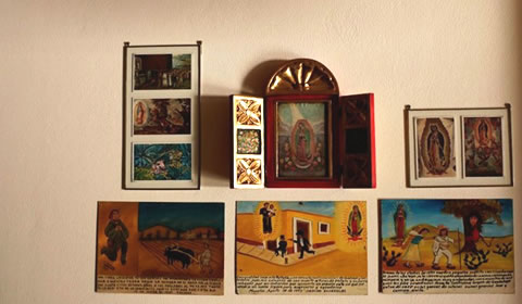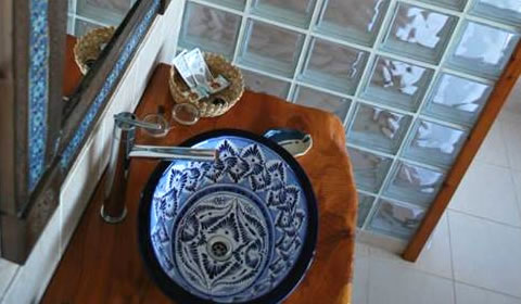 Habitación Volcán ¨Llaima¨, con vista al bosque. Cama Queen Size, decorada artesanalmente con acolchados mexicanos hechos en telar, TV LCD de 32" con decodificador satelital, baño en suite, con vista a la montaña y laguna, mesada de ciprés, lavabo y espejo pintados a mano. Inodoro y Bidet. Placares de lenga.
